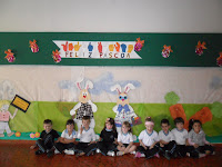 Jardim I (Profª Cibelli): Um dia bom pra Coelho - essa turminha criou uma historia infantil, de como seria o dia ideal e saudável para Coelhinho da Páscoa. Então plantaram cenouras, produziram um livro de receitas, fizeram ninhos de páscoa, cuidaram da plantação de flores, fizeram exercícios físicos e confeccionaram a cesta saudável cheia de frutas.